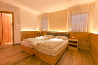 Zimmer zu 24 m2 für 1-3 Personen, Erdgeschoss Nordseite, superior Klasse. Vorraum mit Schränken und Garderobe. Schlafzimmer mit Doppelbett oder zwei Einzelbetten, zwei Fenster gegen Luft- und Lichtschacht, Wellness-Ecke mit Infrarot-Saunakabine. Badezimmer mit Dusche, Bidet, Waschbecken und WC, Föhn und Handtuchwärmer. LCD Fernseher, SAT, Telefon, Wandsafe, kostenlose Internetverbindung via LAN-Kabel oder Wireless, Bettwäsche und Handtücher vervollständigen die Ausstattung des Zimmers.